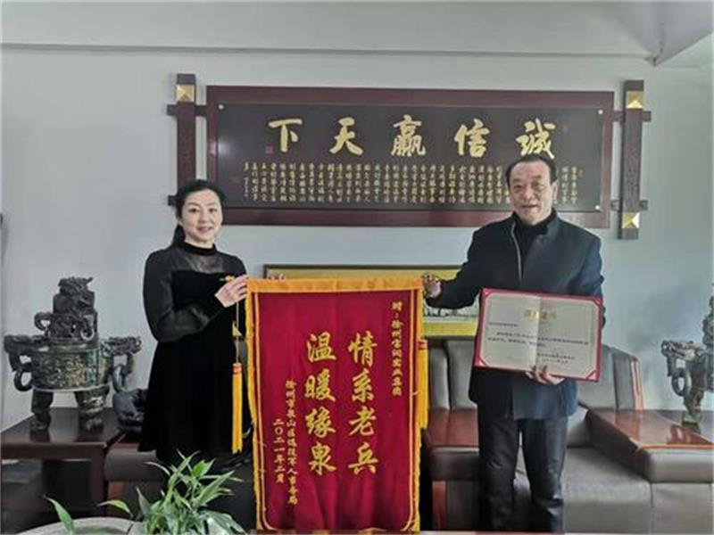 “情系老兵,溫暖緣泉”,泉山區(qū)退役軍人事務(wù)局特于2021年2月向集團頒發(fā)了榮譽證書與錦旗。