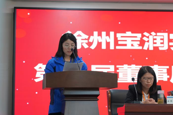 徐州寶潤(rùn)實(shí)業(yè)上市集團(tuán)黨委常委、辦公室主任、人力資源部長(zhǎng)郝雪雪宣讀候選人簡(jiǎn)歷。