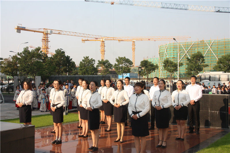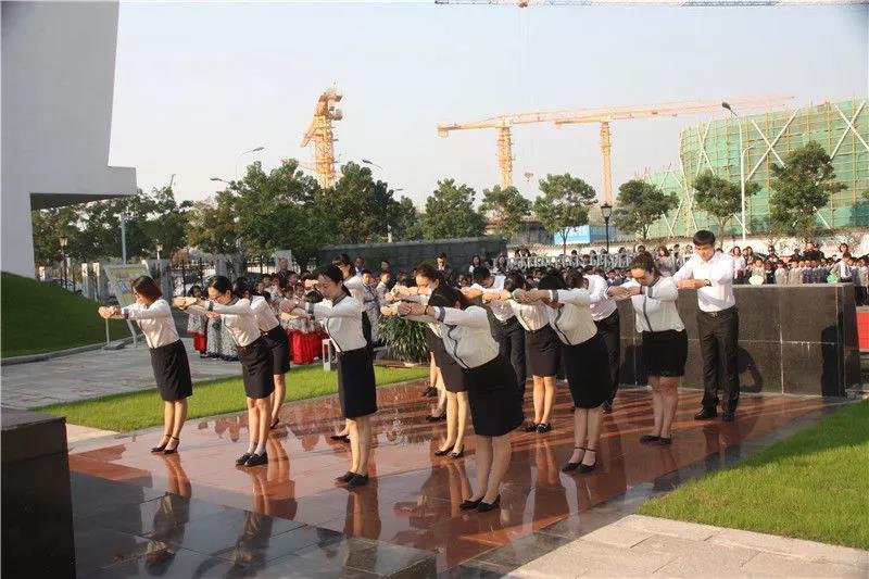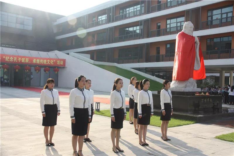 老師們排著整齊的隊伍,聚集在孔子像前,在古樸悠揚的音樂聲中拉開了祭孔典禮的序幕。