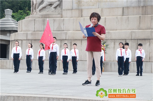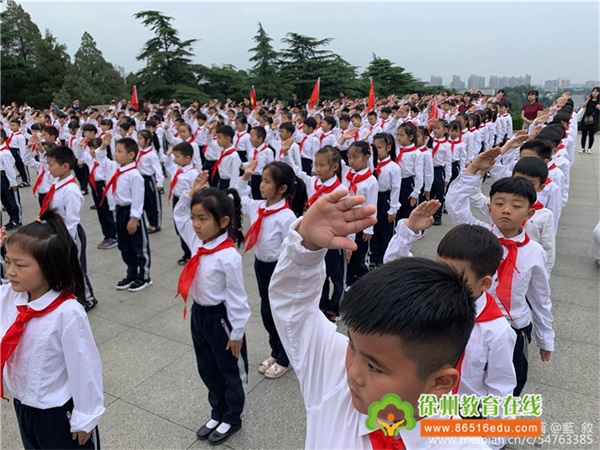 這震耳欲聾的宣誓響徹在徐州淮海烈士紀(jì)念塔的上空!鮮艷的紅領(lǐng)巾映襯著新隊員的臉頰,每個人的臉上都洋溢著幸福、甜蜜的笑容,這是他們最激動的時刻。