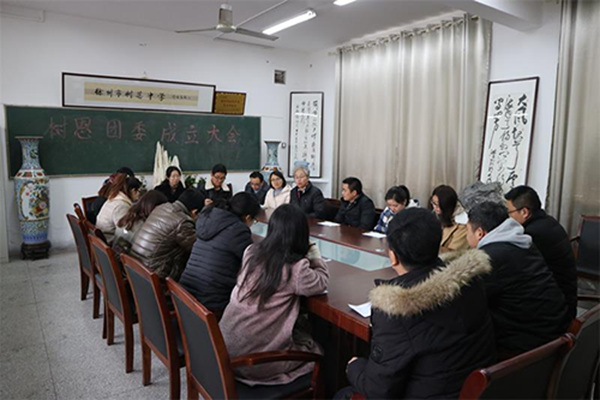 2018年3月1日,樹(shù)恩中學(xué)召開(kāi)共青團(tuán)徐州市樹(shù)恩中學(xué)第一次團(tuán)員大會(huì),18名團(tuán)員老師參加了會(huì)議。經(jīng)大會(huì)選舉,由戚其彬、趙霞、王祺三名同志組成共青團(tuán)徐州市樹(shù)恩中學(xué)第一屆委員會(huì)。經(jīng)共青團(tuán)徐州市樹(shù)恩中學(xué)第一屆委員會(huì)第一次全體會(huì)議,選舉戚其彬同志為共青團(tuán)徐州市樹(shù)恩中學(xué)書(shū)記,趙霞、王祺同志為委員。