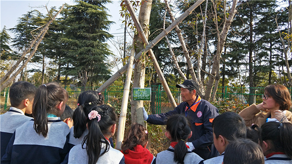 南佛園林武碩州總經(jīng)理為師生們講解植樹方法,科普小知識