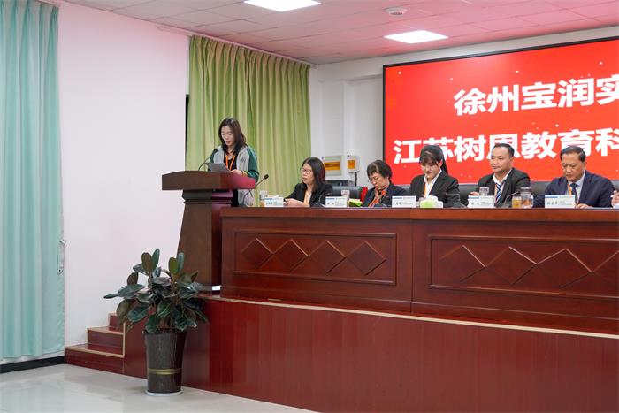 董事局董事、徐州市樹恩中學(xué)總校長兼初中部高鐵校區(qū)校長薛淑萍同志做工作匯報。