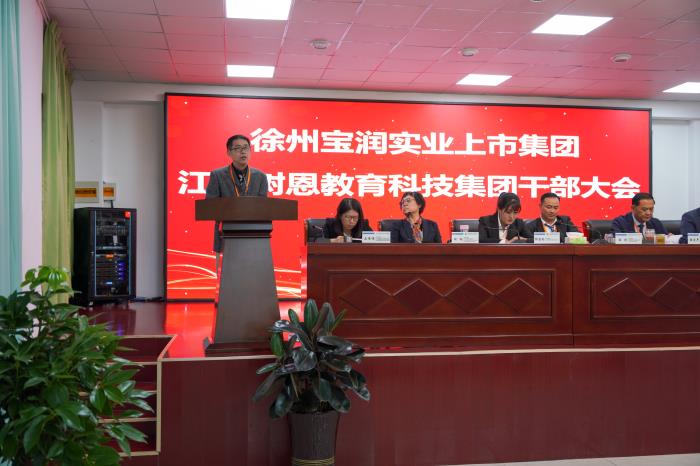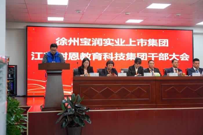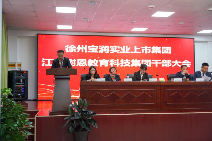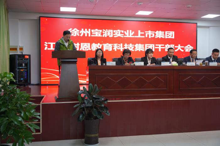 2020年10月10日,徐州寶潤實業(yè)上市集團(tuán)、江蘇樹恩教育科技集團(tuán)干部大會在徐州市樹恩外國語小學(xué)舉行。徐州寶潤實業(yè)上市集團(tuán)董事局主席、董事長張愛平出席會議并作重要講話。集團(tuán)董事局成員及下屬產(chǎn)業(yè)集團(tuán)經(jīng)營團(tuán)隊、職能部門主要負(fù)責(zé)人參加會議。