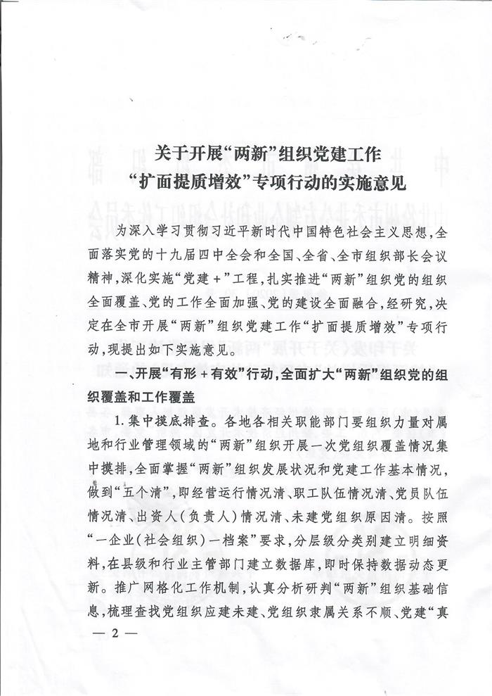 關(guān)于印發(fā)《關(guān)于開展“兩新”組織黨建工作“擴(kuò)面提質(zhì)增效”專項(xiàng)行動(dòng)的實(shí)施意見》的通知