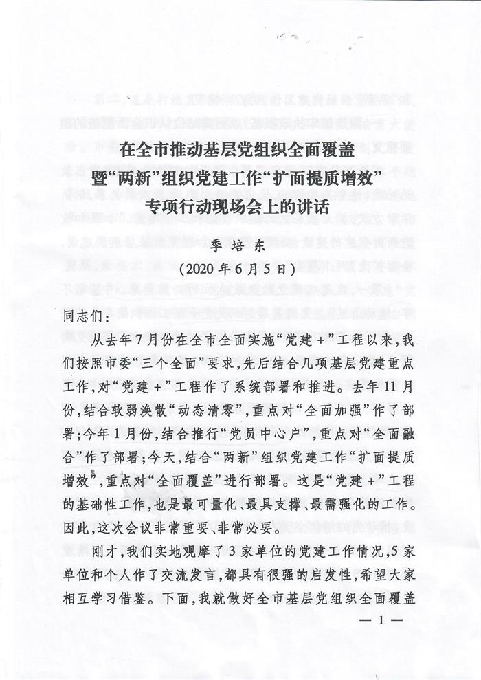 在全市推動(dòng)基層黨組織全面覆蓋暨“兩新”組織黨建工作“擴(kuò)面提質(zhì)增效”專項(xiàng)行動(dòng)現(xiàn)場(chǎng)會(huì)上的講話